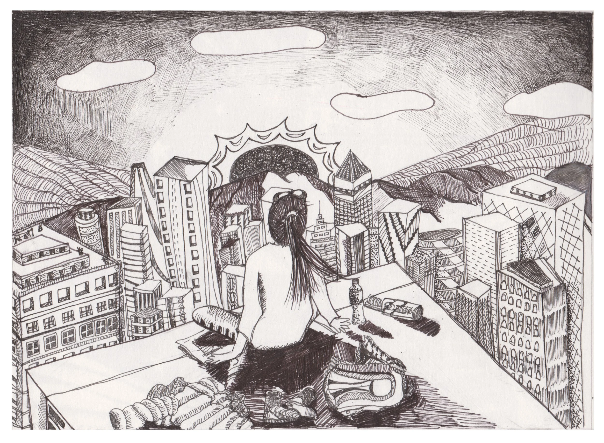 This dream inspired a series of drawings that I titled Sky Scraper. But here, the term doesn’t refer to the towering buildings of a city skyline. Instead, it’s about a girl who flies so high that she scrapes through the sky itself, leaving trails of imagination and wonder in her wake.